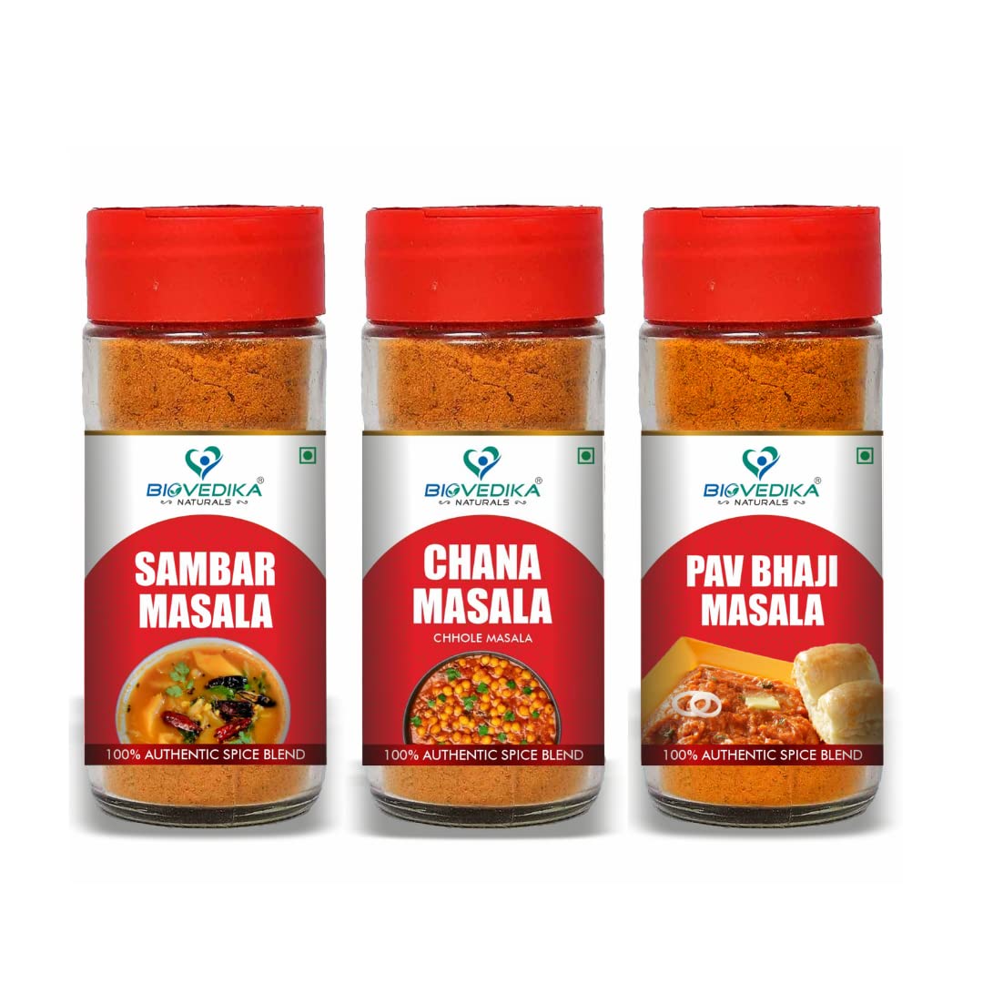 BIOVEDIKA Combo of Sambar Masala + Chana Masala + Pav Bhaji Masala Authentic Spice Blend (100 Gm Each)