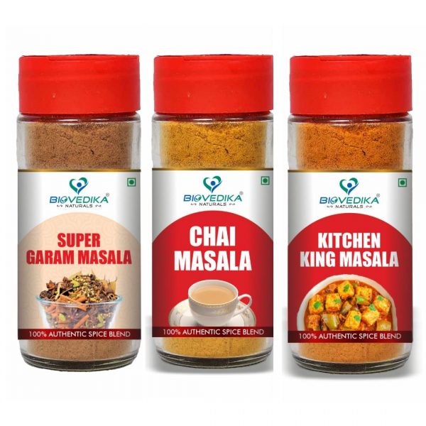 BIOVEDIKA Combo of Super Garam Masala + Chai | Tea Masala + Kitchen King Masala Authentic Spice Blend (100 Gm Each)